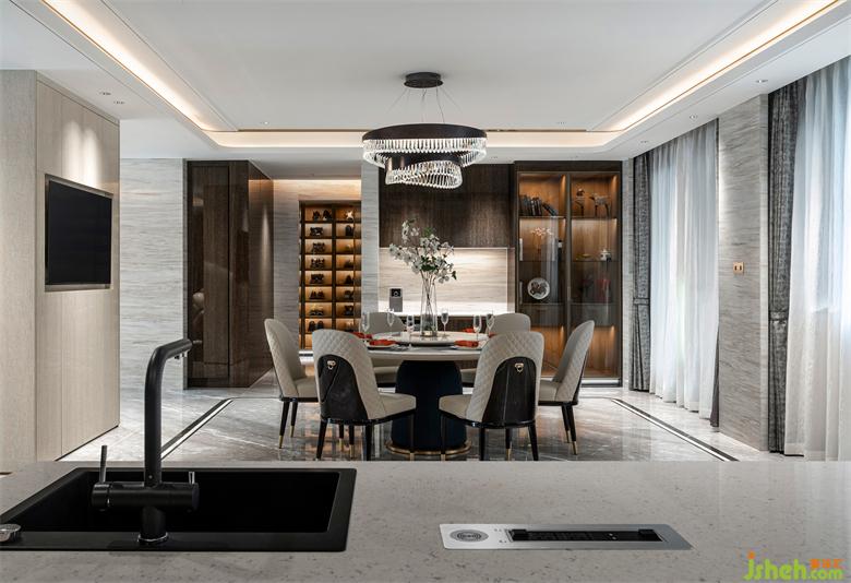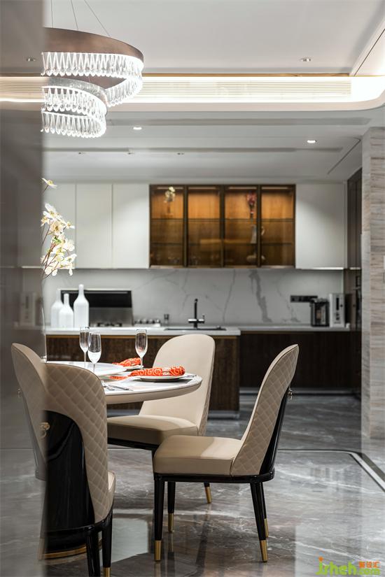 別墅裝飾設(shè)計將餐廳與西廚區(qū)連通一體