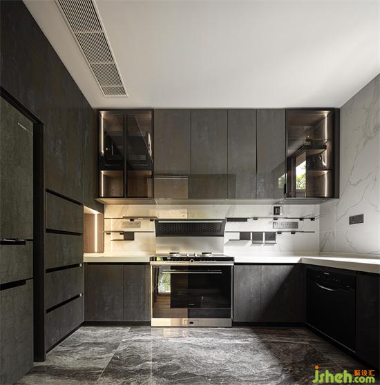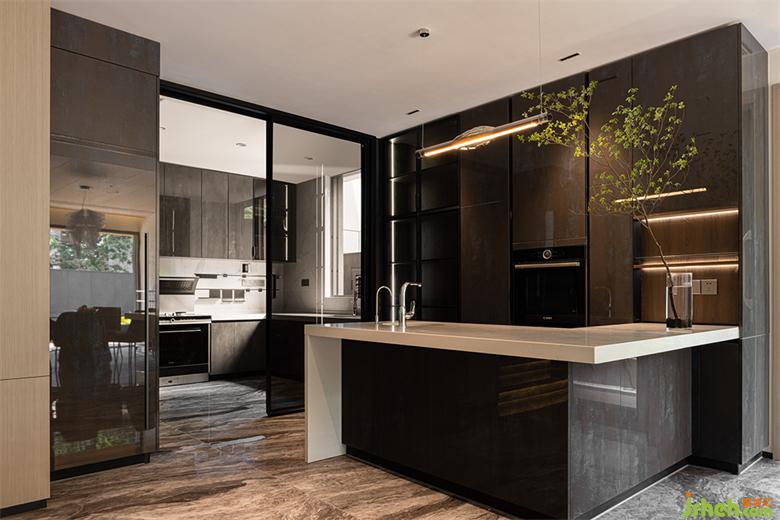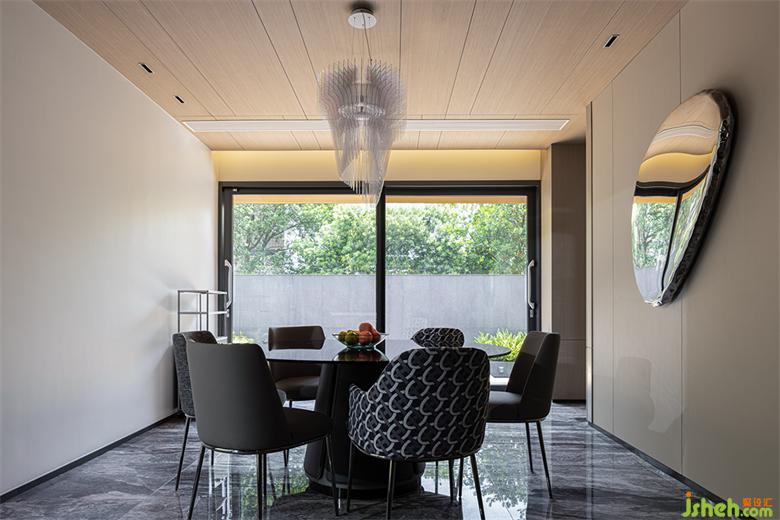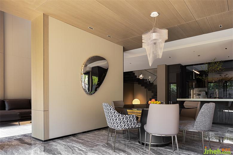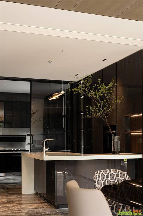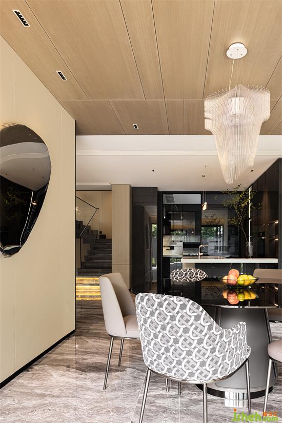與客廳相通的區(qū)域,現(xiàn)代別墅裝修設(shè)計是愜意的用餐場景。餐廳、水吧與廚房,形成一種天然的親近狀態(tài)。一家人齊聚于此,于四方美食中,感受人間煙火。