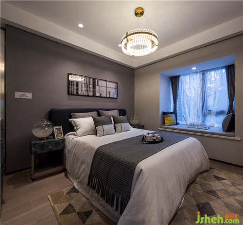 客臥設(shè)計(jì)平和淡雅,彌漫著靜謐安寧的氛圍。低調(diào)柔和的淺灰色調(diào),知性溫馨、大氣簡(jiǎn)約且不乏時(shí)尚的軟裝元素,江西樣板房設(shè)計(jì)詮釋著主人對(duì)美的品味追求與超凡脫俗的氣質(zhì)。