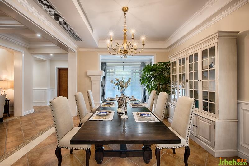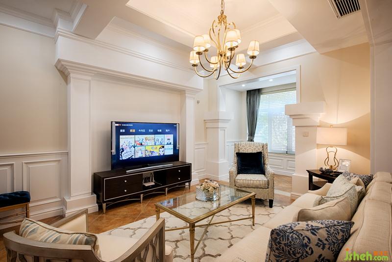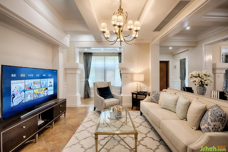 軟裝配飾上室內(nèi)設(shè)計師加入了少部分中式青花瓷的元素混搭在美式風(fēng)格中,使整個居住空間更明亮更貼近于中國人的生活。
