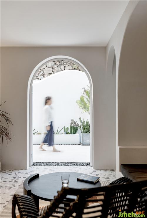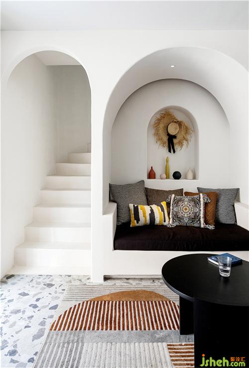 時(shí)間在空間中的關(guān)系,隨著室內(nèi)的建筑感變得充滿戲劇性,予人的感覺恍如身臨地中海的城堡中,體驗(yàn)一種異域的浪漫風(fēng)情。