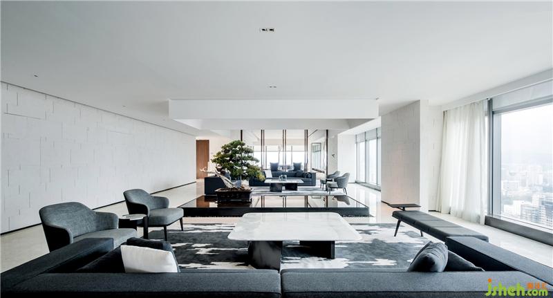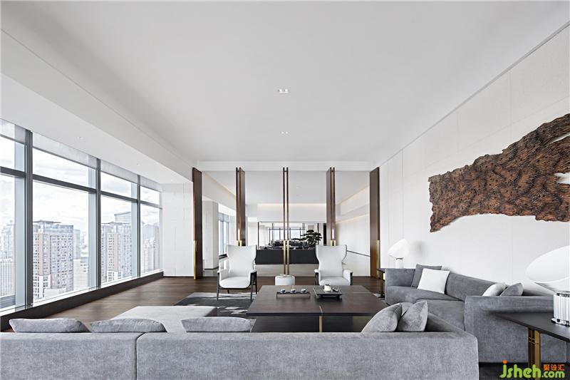 企業(yè)會(huì)所設(shè)計(jì)在結(jié)構(gòu)處理上干凈利落,大面積落地窗,在引入自然光影的同時(shí),亦讓城市的繁華盛景映入人的眼簾,深化人與生活、城市之間的聯(lián)結(jié)。在云端之上,從喧囂塵世中抽身片刻,感受靜謐,休憩身心。