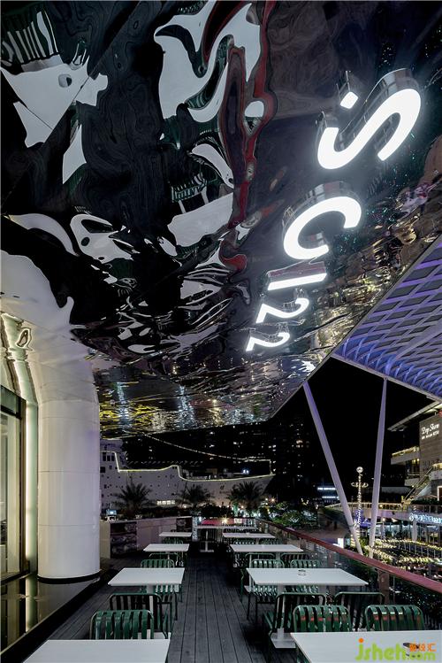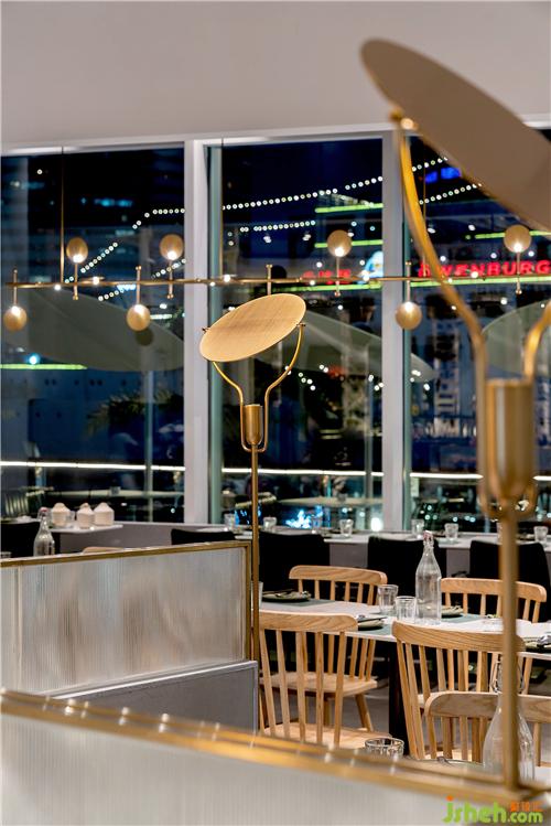 混凝土磚、鏡面、黃銅、藝術(shù)玻璃......埂上設(shè)計(jì)在材料選擇上,不僅僅考慮造價(jià)和純粹技術(shù)的因素,同時(shí)考慮情感體驗(yàn)、藝術(shù)想象。餐廳西面擁有廣闊的觀(guān)景視野,搭配大面的落地玻璃,將自然引入空間,讓人眺望海上世界美麗的海景與夜景。