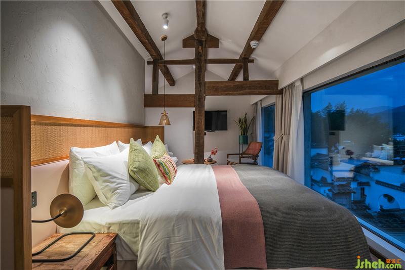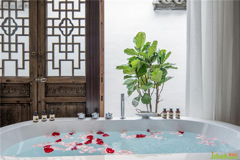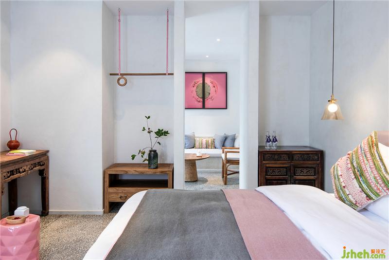 門罩、天井、庭院和磚石雕鏤的漏窗矮墻將客房分列兩側(cè)互不干擾確??头康乃矫?。