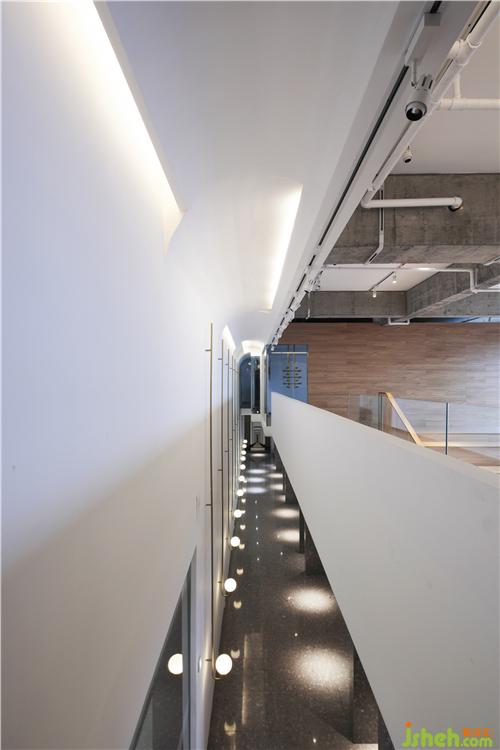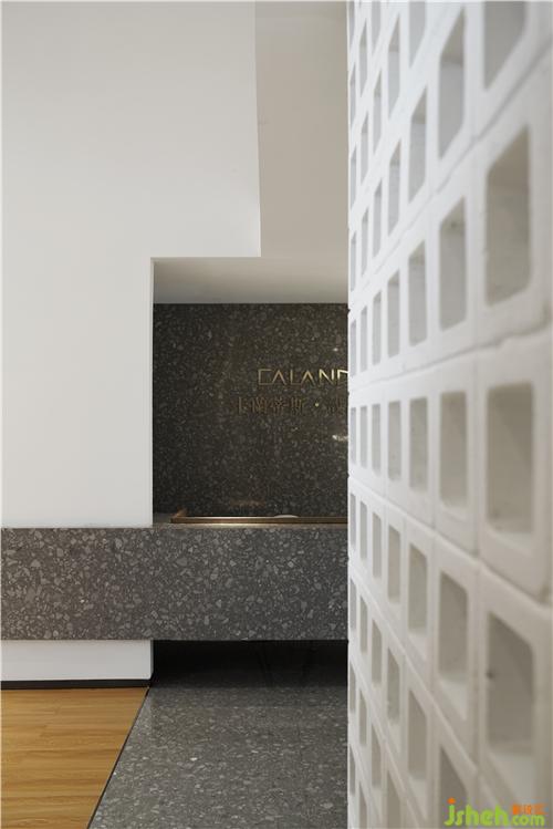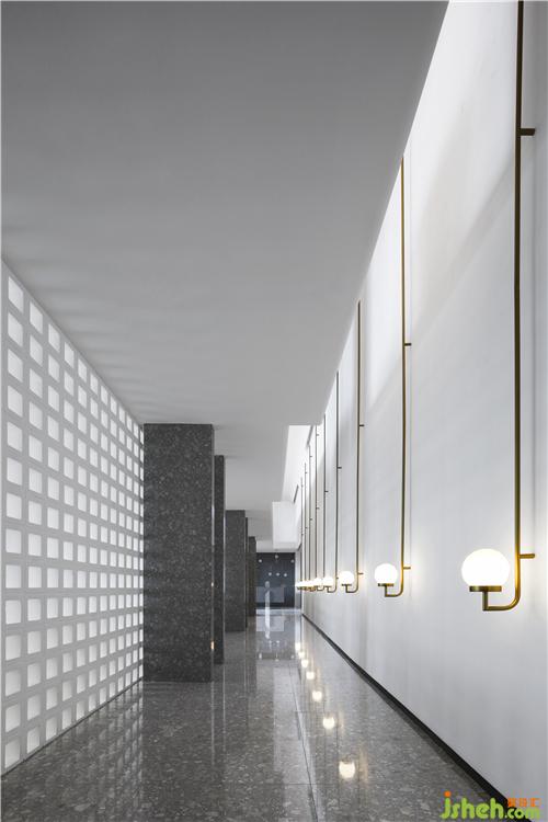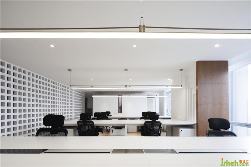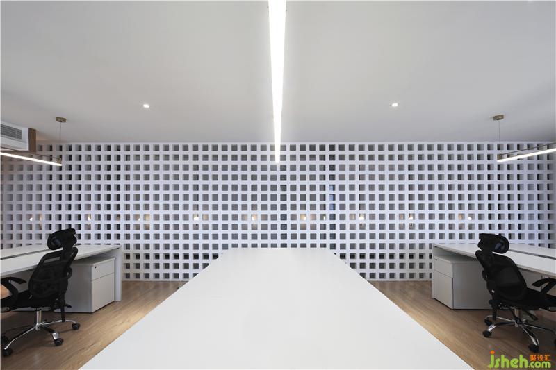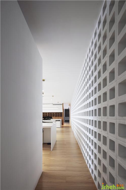 光穿透空心磚墻形成的光影效果,使過廊不再單調(diào)悠長。辦公區(qū)不再滄白淡漠。辦公室設(shè)計(jì)