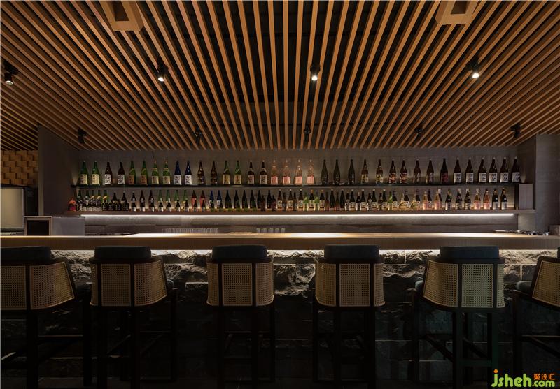 推門而入,由體塊圍合構(gòu)成的吧臺(tái)映入眼簾,大面積的長(zhǎng)桌可讓顧客盡情欣賞師傅制作食物的手藝。在建筑材質(zhì)上,富有自然肌理的木質(zhì)與巖石組合穿插,凸顯當(dāng)代純粹的自然主義風(fēng)格。餐廳設(shè)計(jì)