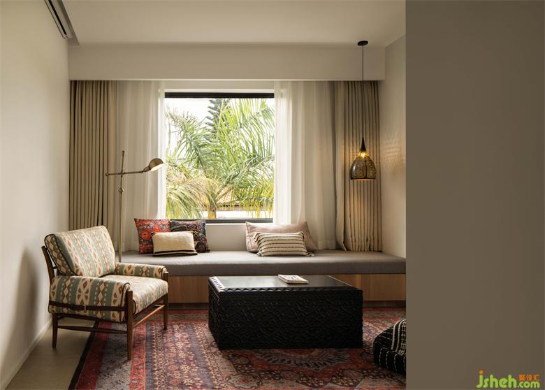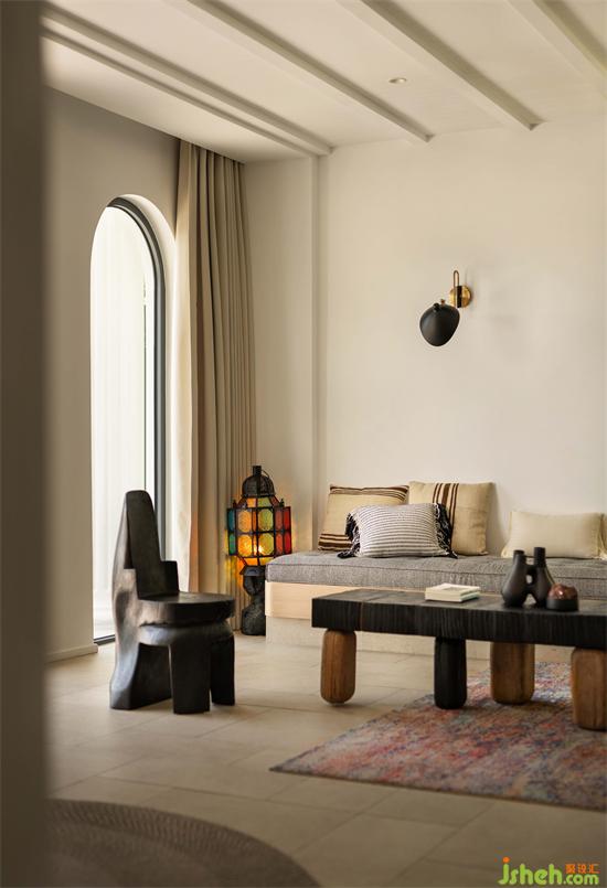 公共區(qū)域中豐富的木質(zhì)家居陳設(shè),以柔和的肌理為空間的情緒傳遞溫暖。樹(shù)木生長(zhǎng)的年輪印刻著過(guò)往的歲月痕跡,也傳遞著都市人勇于掙脫城市束縛、投身自然的設(shè)計(jì)理念:度假酒店設(shè)計(jì)以城市孤島中的漂浮意象,度假酒店設(shè)計(jì)投射現(xiàn)代人內(nèi)心渴望理解與親近的孤獨(dú)狀態(tài)。