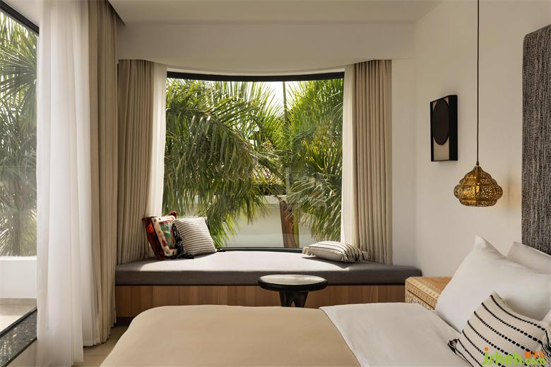 去風格化的風格已成為當今主流的設(shè)計方法之一,從建筑到室內(nèi),其影響處處可見。度假酒店設(shè)計為了體現(xiàn)極簡主義的利落感和都市感,留白是設(shè)計師最常用的表現(xiàn)手法。但并不意味著要刻意回避設(shè)計,只不過是把空間保持在最簡單松弛的狀態(tài)。