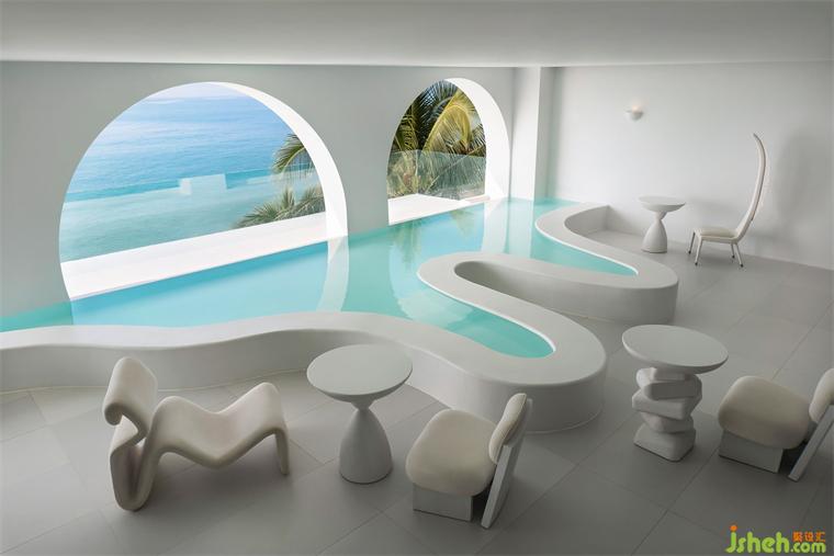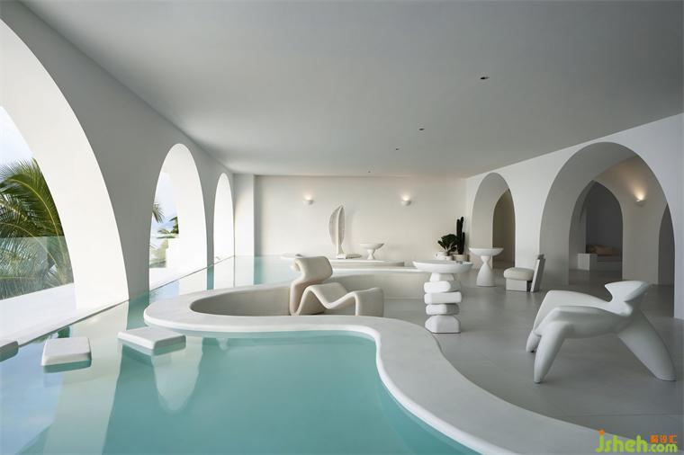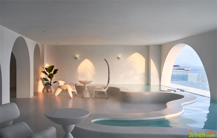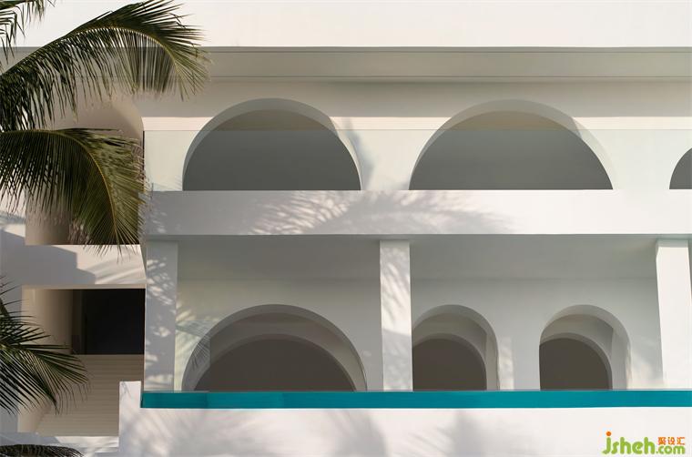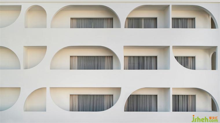 三亞宿寐天涯海岸精品酒店,坐落于海南三亞熱門景點天涯海角附近,精品酒店設(shè)計擁攬無邊無際的觀海視野,海浪涌動的聲響幾近清晰可聞,讓濃郁沁人的藍,漫入旅人的夢鄉(xiāng)。佇立海邊的這棟民宿,設(shè)計師賦予外立面形制以兩種視角的解讀 —— 精品酒店設(shè)計從外視角來看,建筑外觀呈海浪般的高低起伏狀;從內(nèi)視角來看,每一道海浪的浪峰均圍合出一個獨立的景框,予人不受干擾的定格畫面。
