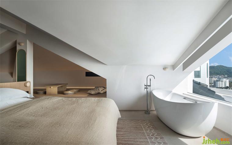 在藍(lán)白圣島的空間規(guī)劃中, 設(shè)計(jì)師將原本25個(gè)房間各自規(guī)劃了不同的房型,并為每一棟設(shè)置了獨(dú)立的起??臻g,真正實(shí)現(xiàn)了“一房一景”的微妙變化,蜜悅懸崖泡池美宿設(shè)計(jì)以設(shè)計(jì)為品牌價(jià)值的最大化創(chuàng)造可能,酒店設(shè)計(jì)為品牌后續(xù)運(yùn)營和復(fù)購做足了思考。