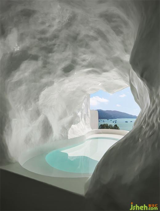 云海之上,時(shí)光悠長,空間賦予旅人安靜的力量,在山海之間一池懸崖之上的洞穴泡池中擁抱生活與理想,從庸常的生活中抽離,酒店設(shè)計(jì)在靜謐的自然之中感受于己的愛意與尊重。設(shè)計(jì)師以善意的設(shè)計(jì)語言讓旅人和自己相遇。
