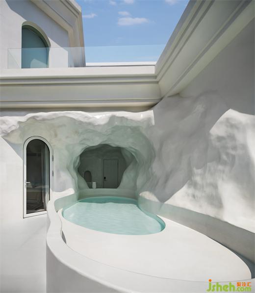 粗獷綿延的洞穴浴池連接室外的山海,私密而通透。臨池而坐,眺望遠(yuǎn)山與海,在此刻的靜謐中感受與自然相處的喜悅,蜜悅懸崖泡池美宿設(shè)計(jì)帶著近似冥想的心境也慢下來,共同感受當(dāng)下安靜的力量。