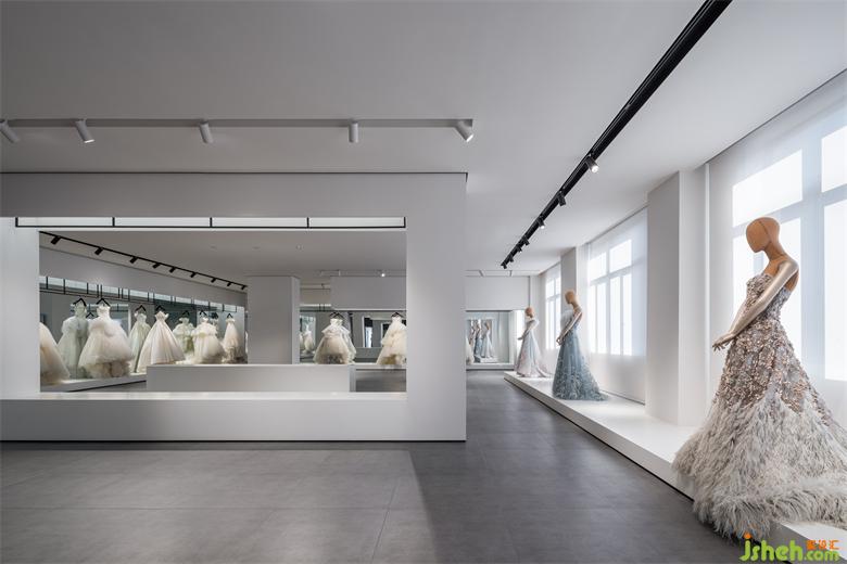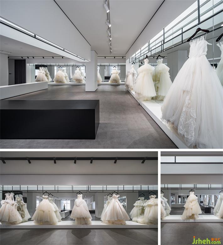 設(shè)計循序漸進走向另一條價值賦能的解題思路。視覺成為引導(dǎo)心理的暗語,無需標(biāo)注,禮服展廳設(shè)計便梳理出共識的動線,去影響人在其中的觀感,體驗,以及行為。