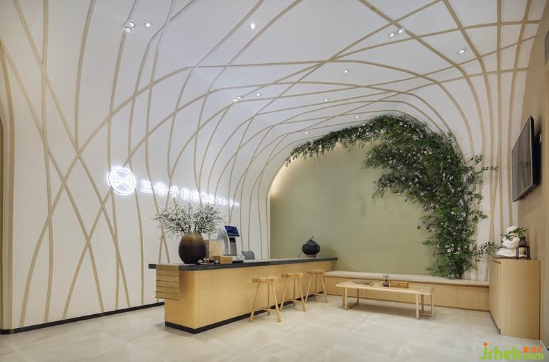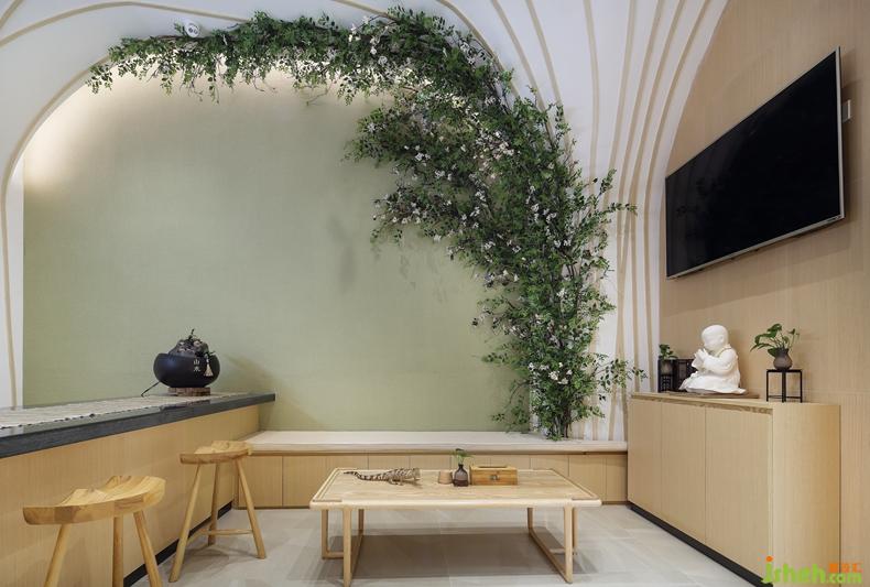 攀爬上墻至天花的裝飾植物,淡淡的抹茶色的墻,仿佛令人置身愛麗絲的花園一樣。在繁華的都市里,生活節(jié)奏不斷加快,工作壓力與日俱增,走進這大森林一般的治愈空間里,全身心都得以放松。