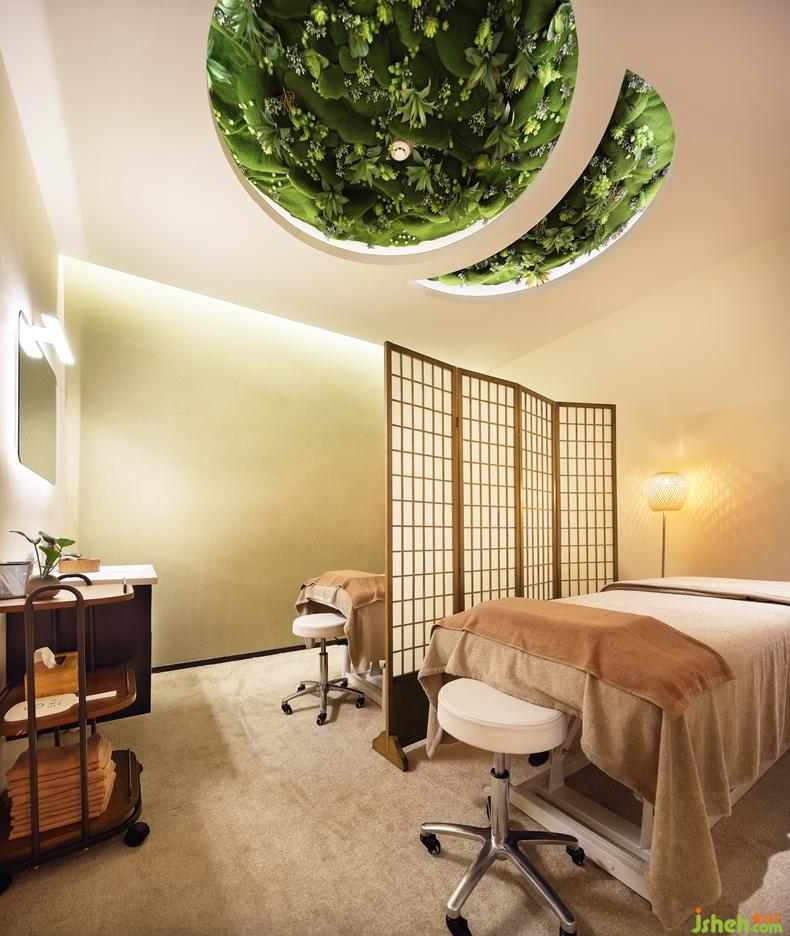 美容室在設計上最亮眼的無疑是天窗的設計,里面用綠色的植物裝飾,躺下來,或抬頭便是一座大森林透過窗口映入眼簾,清新的氣息撲面而來。深圳室內設計師讓在享受美容服務的同時,眼睛和心靈都得到大自然的治愈。