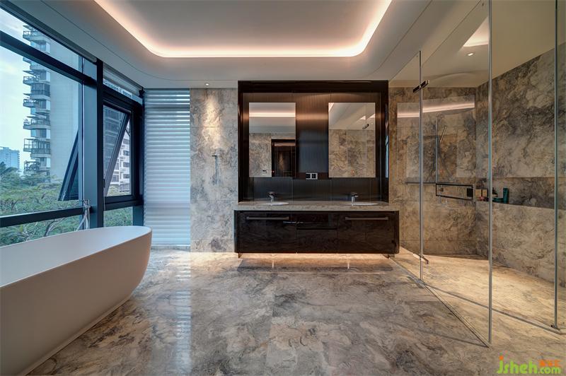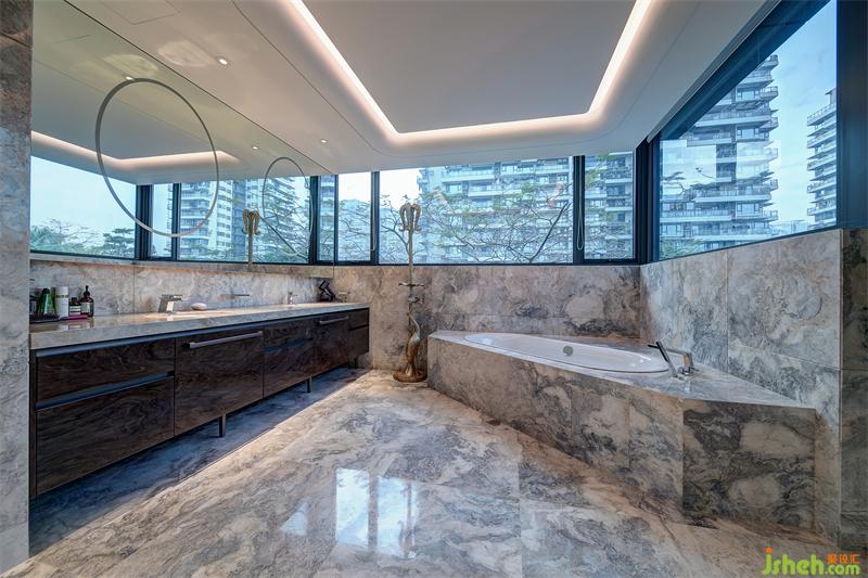 將近40平方的主衛(wèi),配合有智能控制的背燈大鏡,按摩式浴缸,獨立的桑拿房,還有干濕分離的淋浴區(qū),在辛苦一天后,泡在浴缸中,讓緊繃的精神得以放松,瞬間所有壓力全無。