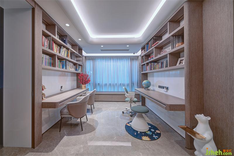小朋友的房間里結(jié)構(gòu)簡單,但也存在了很多的可能性,小朋友可以自行裝飾自己喜歡的空間,深圳別墅設(shè)計對此,戶主劃出了一片學(xué)習(xí)的區(qū)域給孩子,書架上擺放著各式各樣的書籍,適合孩子暢游在知識的海洋,天真、浪漫、美好的童真。