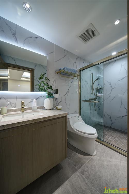 整個衛(wèi)生間以香檳金做為輔色,顯得整個衛(wèi)生間不那么的單調(diào),但優(yōu)勢在于浴室柜,下面帶有櫥柜可以更好的放置隱私物品,當(dāng)然也可以放日常用品。