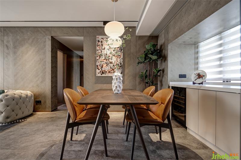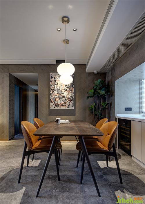 不同質(zhì)感的材料碰撞演繹餐廳的溫馨
