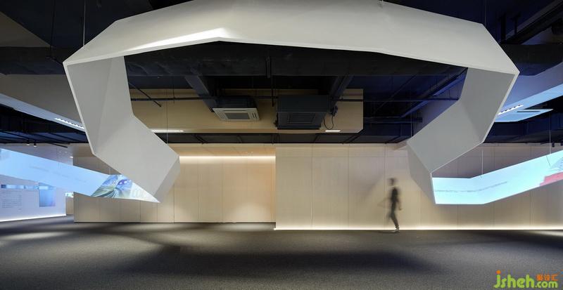 在展示空間部分,設(shè)計師用約束成點線的光進(jìn)行勾勒,以獲取空間的深邃感,增強展示場所所需要的靜肅氛圍。