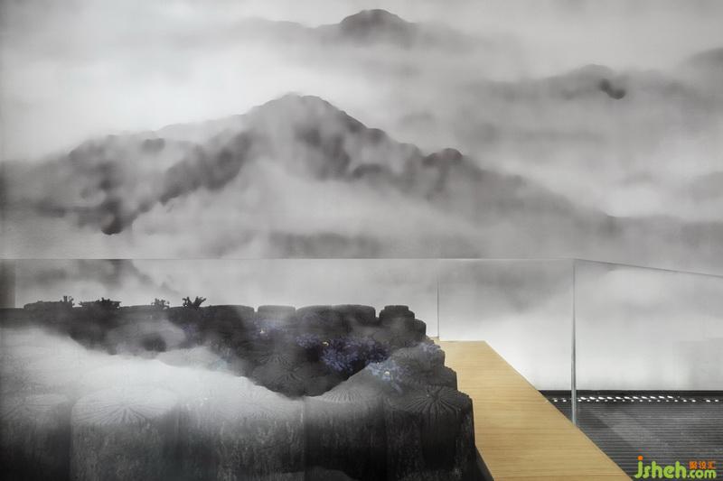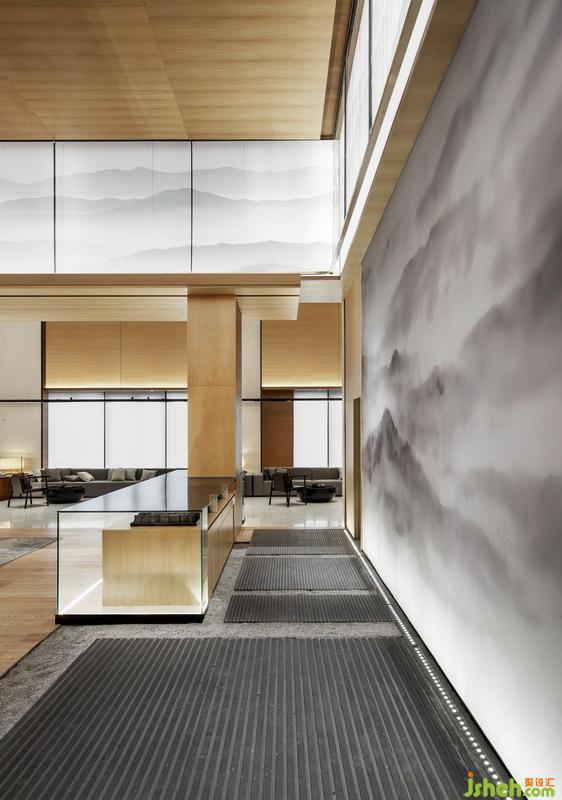 一個空間,尤其是有足夠體量的時候,要讓人一見即驚嘆,實在不是什么難事。而要將同樣大體量的空間,做得讓人一入而有被擁抱的溫軟感覺,那就不容易了。因此,設計師在考慮方案內(nèi)涵形成的過程中,仍然承接樂天哥詩中的自然形態(tài),只是由“遠”及“近”,由“外”入“內(nèi)”,將自然光引入到室內(nèi),使詩中明媚的“動”的生氣一轉(zhuǎn)而為溫馨的“靜”。