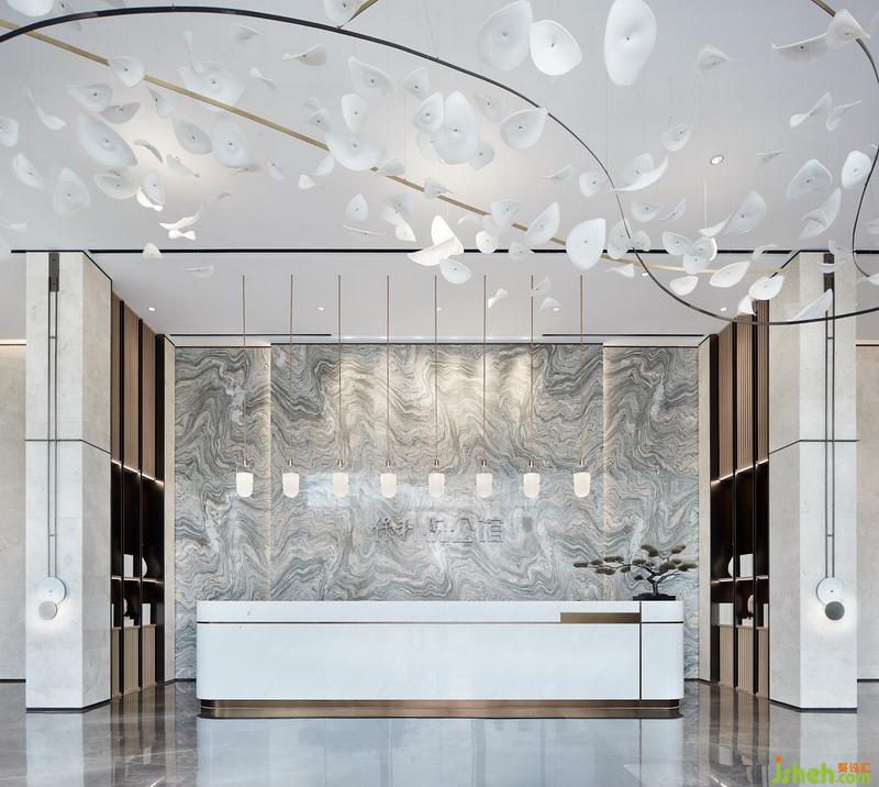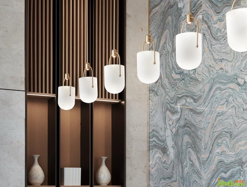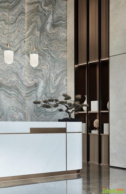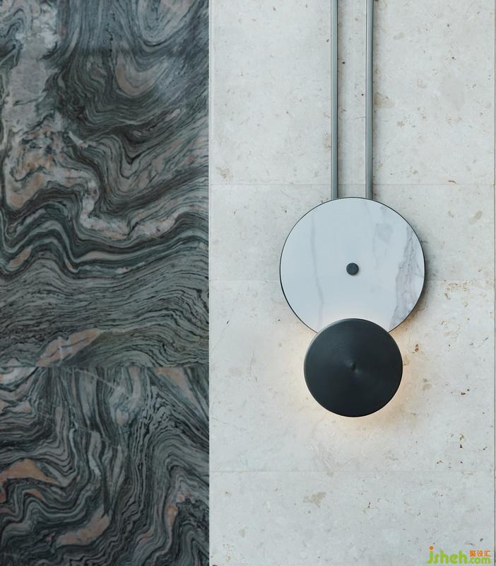 主要材料:水云紗大理石、達芬奇大理石、棕仕啡大理石、木飾面、深灰色打砂不銹鋼