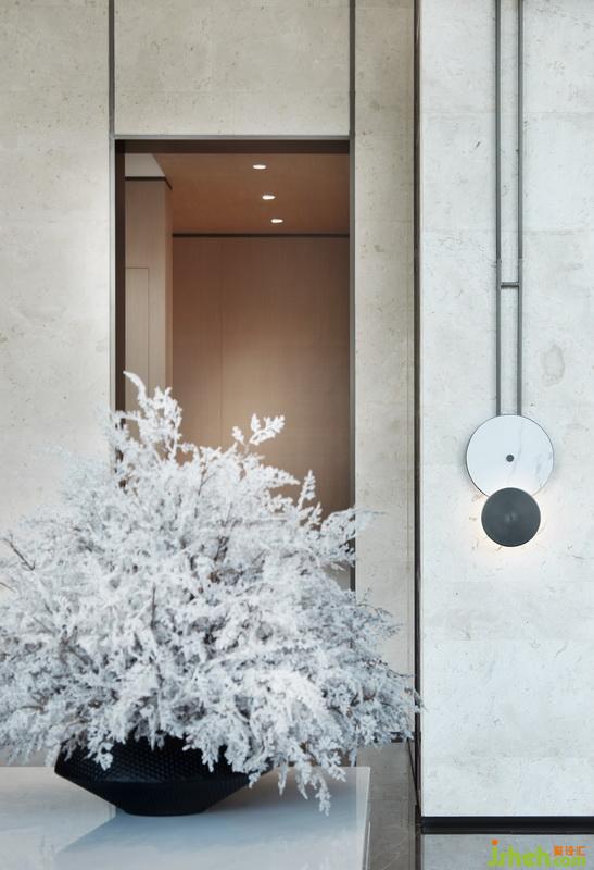 在花藝的臻選上,設(shè)計一以貫之,選用了那些白色的、蓬松的花材,好像在來的路上隨手采拾的芒花被安插在此處,與空間中無處不在的白色器皿,形成色彩記憶的串聯(lián),在洽談區(qū)盡頭圓形的金屬墻面裝置,則回應(yīng)了白花的金屬紐帶。這些細(xì)微之處,正是設(shè)計理念通達(dá)人心的關(guān)鍵。