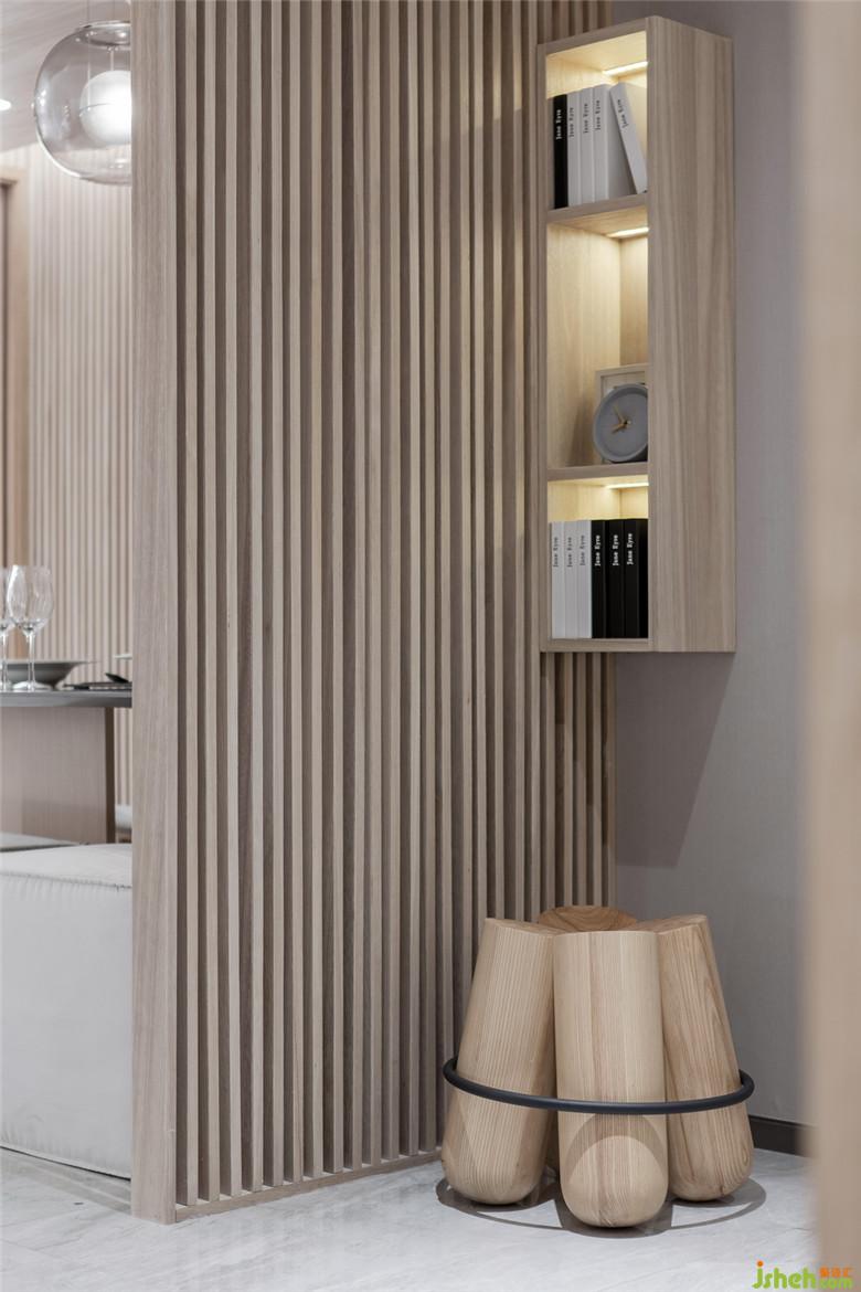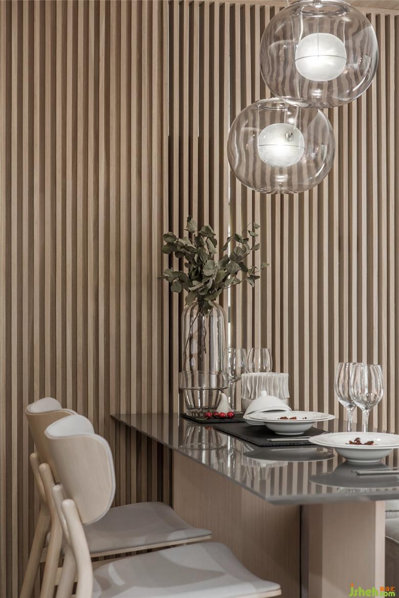 正因如此,空間的整體配色,猶如被水沖洗過一般,淡雅而靜氣。暖灰質(zhì)感的墻面為空間確定了大基調(diào),相對于純白,反而給出一股溫暖的筆觸。開闊的空間,通過原木線條的巧妙界定,為不同的區(qū)域形成心理上的邊界。