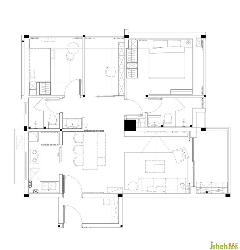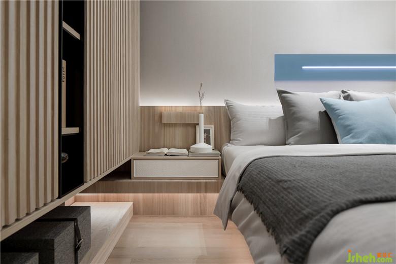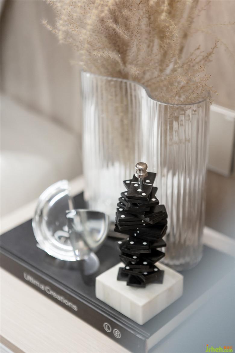 白色棉麻與不同質感的灰度交織,并適時融入淡淡的灰藍絨面質感,穿插少量黑色線條,材質和色彩之間輕柔過渡。