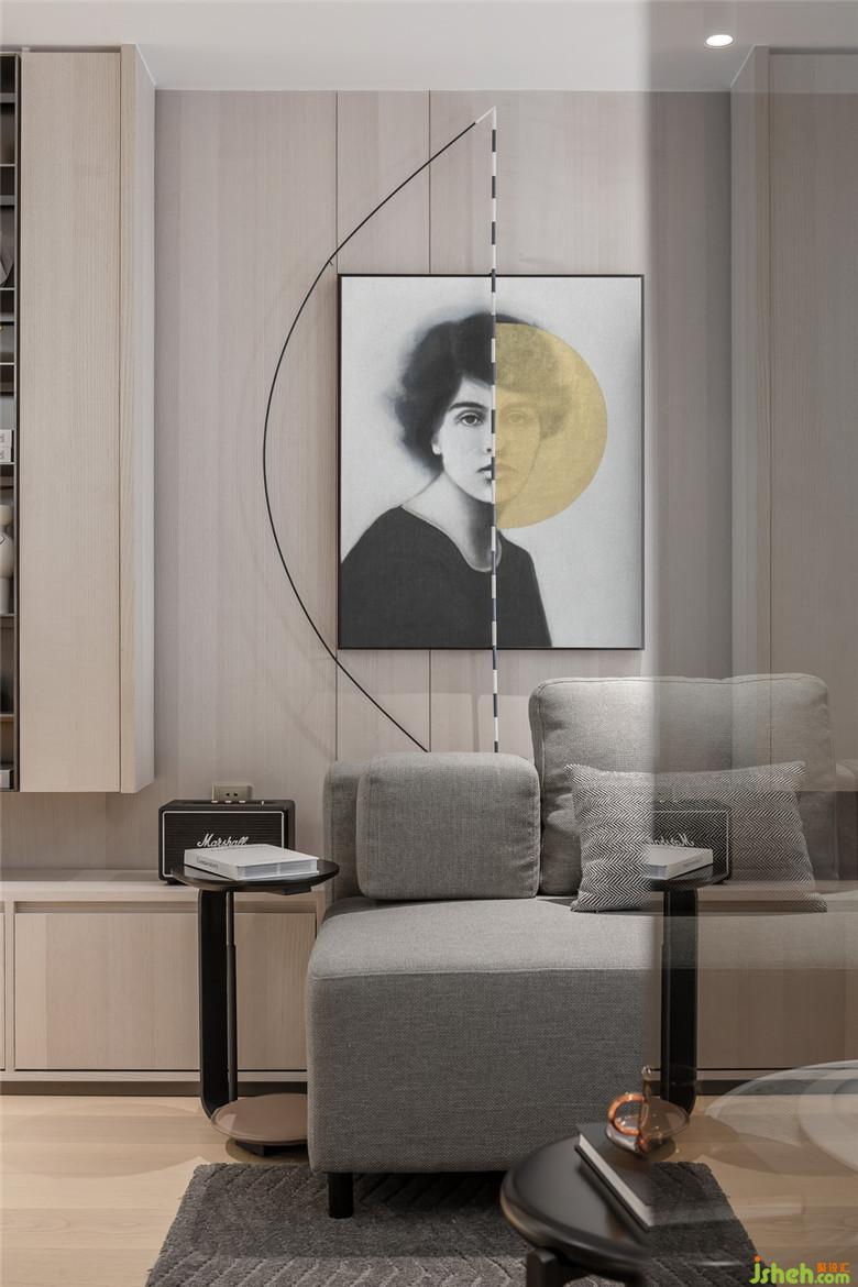 二層是“租客”,一個90后的雜志編輯,擁有既熱愛旅行,又深度“宅”看似矛盾的雙重設(shè)定,設(shè)計(jì)從“自然”入手,在色彩與材質(zhì)上多選用木飾面與溫厚的棉麻,再用柔和的黃色貫穿到空間的每一個角落。