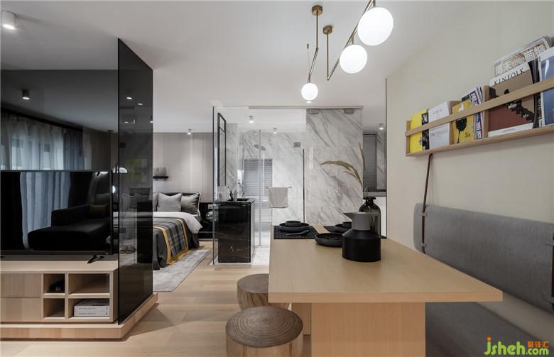 設(shè)計(jì)對功能的介入,決定著生活方式的展現(xiàn)層次:餐桌的功能被極大地豐富化,既可以在這里跟朋友一起動手探索美食的樂趣,也可以獨(dú)自研磨咖啡,在陽光下享受一杯咖啡、一本書的靜好時(shí)光,對于生活和工作界限嚴(yán)重重合的人群來說,這里也可以是一個臨時(shí)的工作臺,墻上的雜志架,是“她”生活的切面。