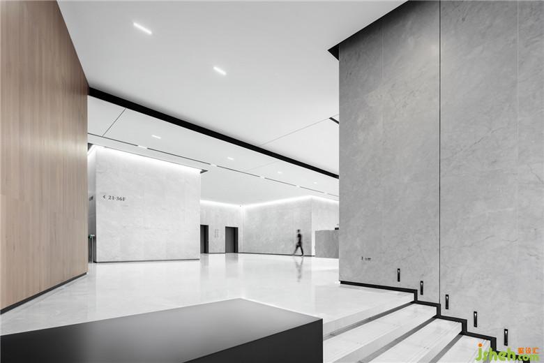 大廈首層入口處的嶺南騎樓立柱被完整保留,具有年代感的大理石立面被更現(xiàn)代的不銹鋼板取代,復(fù)雜的石材肌理被簡化為平整的金屬灰色,讓沉重的立柱變得輕盈明快,以現(xiàn)代的設(shè)計(jì)美學(xué)賦予曾經(jīng)的“砥柱”新的活力。