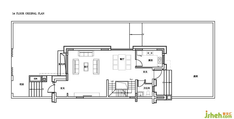 在一層客餐廳,基于雙入口設定,我們改變客廳原對稱性布局,重新排布,優(yōu)化動線,用主沙發(fā)和大茶幾來創(chuàng)造穩(wěn)定面,產生主次關系和空間節(jié)奏。打開封閉式的廚房,與客廳隔著餐桌形成對望,家人與朋友在烹飪、用餐時有了更多的互動和趣味。