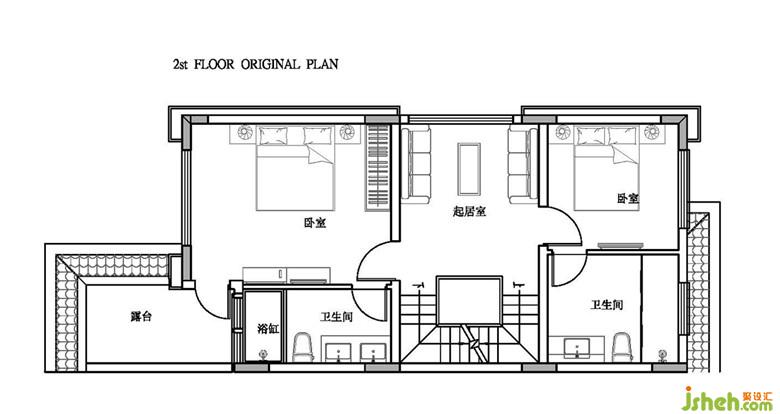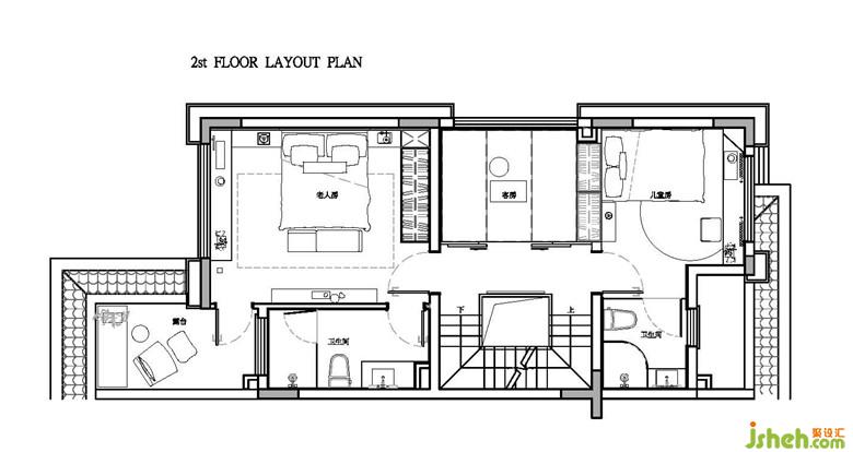 二層設置為長輩與孩童的居住空間,同時開放居所的靈活度,將原起居室改造為兼納客臥與陪伴成長功能的空間。