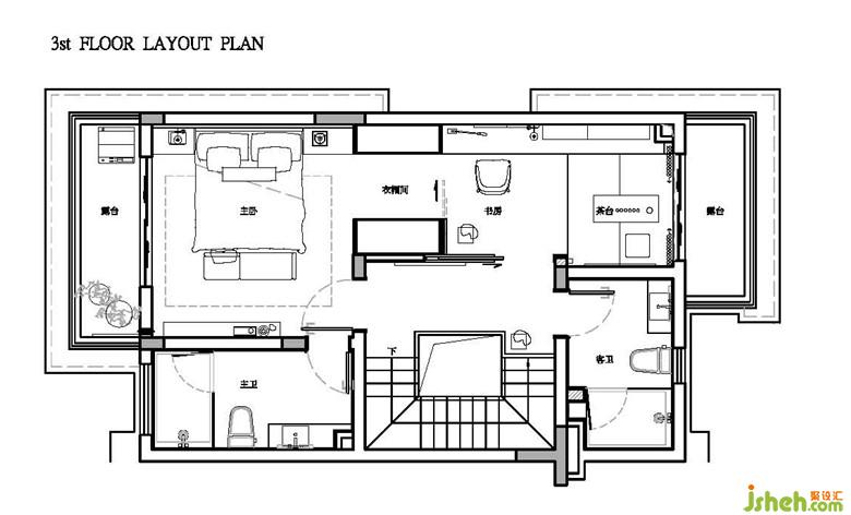 三層更改原活動(dòng)室的設(shè)定,以整層奢適的尺度,容納主人在此間的所有生活需求。