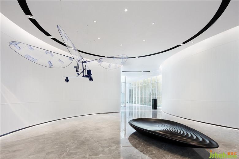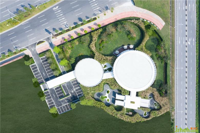 體驗館由兩個大小不等的圓形組成,連結(jié)兩者的是一條長廊,俯瞰形似《星際迷航》太空站跌落的一部分,匍匐在大地之上,與櫛比鱗次的高樓形成鮮明的對比。體驗館下方正在建造佛山3號線地鐵美旗站,未來周邊將建起多重立體軌道交通體系,進而實現(xiàn)城市功能、生活空間與交通通勤的一體化,為數(shù)百萬商務(wù)精英提供高效能服務(wù)。會所設(shè)計