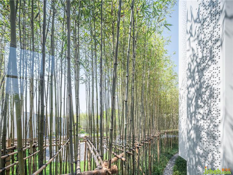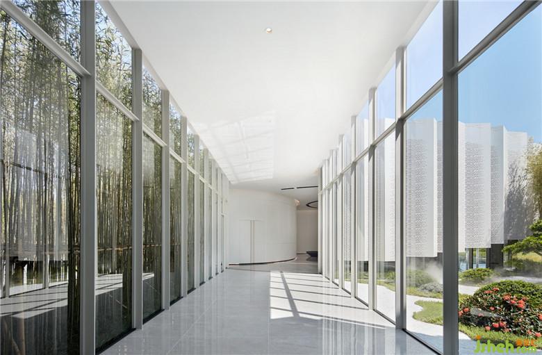 體驗(yàn)館表面呈圓筒形,呈現(xiàn)出均勻、光潔的曲線;潔白的結(jié)構(gòu)柱與玻璃細(xì)膩的清晰度,營造出干凈通透的空間氣質(zhì)。如同一朵流云在陽光下飄過,斑駁的光影讓空間擁有了新的生命力。體驗(yàn)者從小圓空間進(jìn)入,再通過藝術(shù)長廊進(jìn)入大圓空間,有意縮小的開口,再于內(nèi)部放大視野,開合之間制造出全身心的感官刺激。