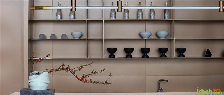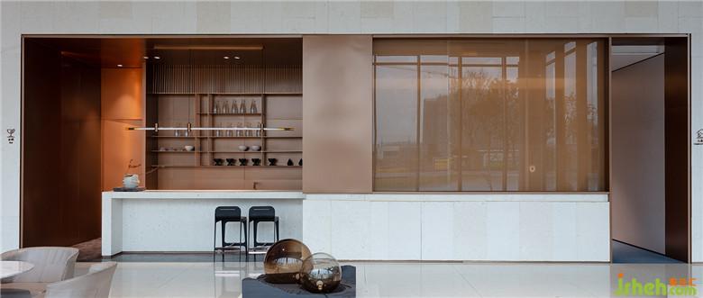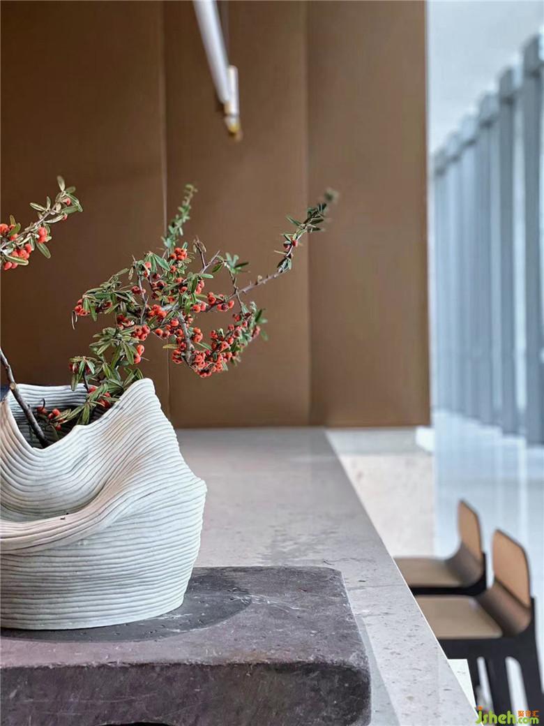 桃花源既是中國傳統(tǒng)文人對理想的追求,也是中國當(dāng)下語境里的烏托邦暢想;不僅是個(gè)人的愿景,更是大視角下的社會圖景,閃耀著東方色彩的人文之光,而空間設(shè)計(jì)必須將之變成立體的意象,讓人可以走進(jìn)去的真實(shí)場景。共生形態(tài)選擇古典的朱砂紅、墨黑與金色,點(diǎn)綴端莊穩(wěn)重的琉璃藍(lán),和空間中使用的石材、黃銅與木材堆疊穿斫,在悄無息中拉長了時(shí)空的距離,具象化空間的神秘虛幻色彩。錯(cuò)落別開的屏風(fēng)上濃重的一筆墨跡,凸顯灑脫東方藝術(shù)視像。