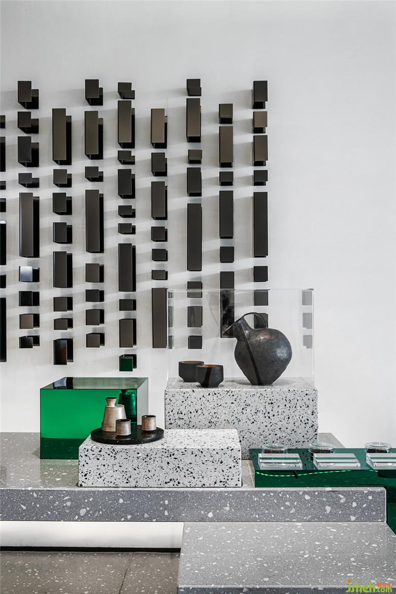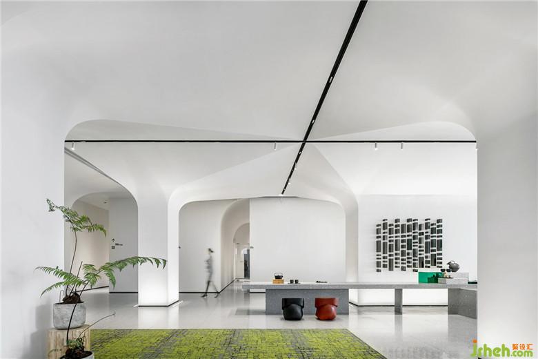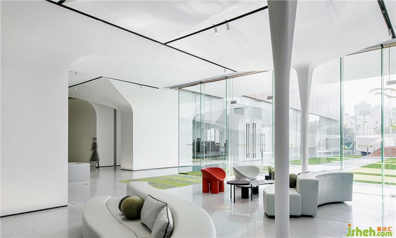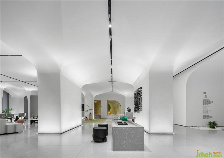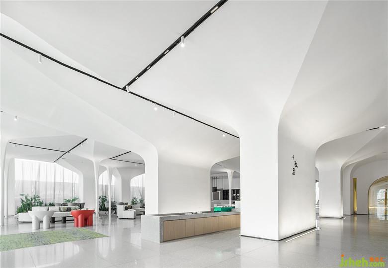 在柔和的白底色中,呈現(xiàn)出極具趣味性的空間童趣氛圍,與結(jié)構(gòu)感的空間線面關(guān)系。而在二層,設(shè)計(jì)以榕樹冠為原型,在空間中切入了正方、圓形等幾何體塊加深體驗(yàn)。如此,空間隨著來者在空間中的不斷深入而構(gòu)成了一個(gè)完整的整體。售樓處設(shè)計(jì)