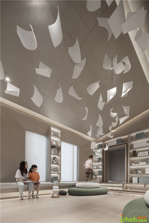間,空間的節(jié)奏與秩序,既是空間與空間的隔,也是空間與空間的連接。平面上的轉(zhuǎn)、承、啟、合,對(duì)應(yīng)了觀者在空間中的行、望、頓、留。氣,風(fēng)在空間中流動(dòng)的沉積,如山水畫(huà)的留白。“間”將“氣”引水入渠,因流動(dòng)而生動(dòng)。天地以氣造物無(wú)心而成形體,“漫卷詩(shī)書(shū)”便是“氣”在空間中游走的物化,如此這般,空間便活了,氣韻生動(dòng)。當(dāng)觀者游覽整個(gè)空間,從這一段徜徉到那一端,發(fā)掘空間的可流連之處,觀者本身亦成為空間的一部分——如果“漫卷詩(shī)書(shū)”指向的是那個(gè)形而上的觀想世界,那么空間中的觀者便是那世俗的本體。