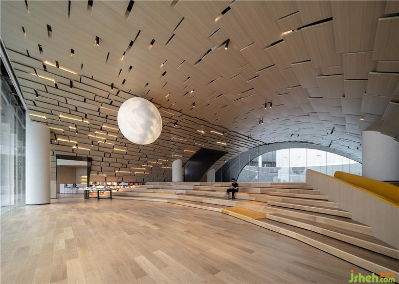 設(shè)計(jì)師認(rèn)為,將時(shí)間與記憶帶入室內(nèi)空間之中,也讓空間有了垂直意義的聯(lián)系。售樓處設(shè)計(jì)空間至下而上分別帶入“童年記憶”、“兒時(shí)憧憬”和“美夢成真”的三個(gè)主題,分別對仗“聽濤”、“望山”、“觀星”三種空間體驗(yàn),因此,也就有了“枕草望月螢火飛,遙看星河嘆流年”的空間感知和詩意表達(dá)。建筑立面的解放讓室內(nèi)外空間相互滲透與融合,自然色調(diào)和特性的材料選擇更充分的表達(dá)出場域特征和居住精神,讓人在瞬息萬變的時(shí)空之中,體驗(yàn)生活和自然之美。
