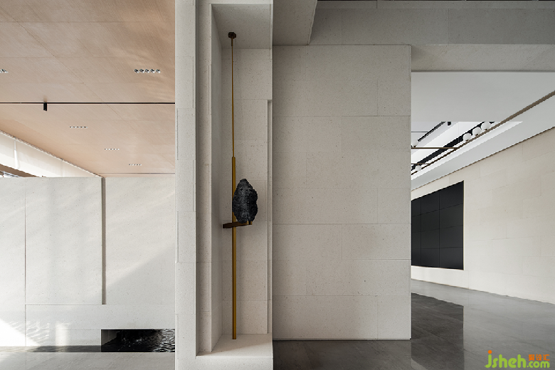 櫥窗式“框景”,一方面破除里外的分界,同時(shí)建立起里與外的銜接;另一方面所“框”之景暗合曲水流觴的敘事,觸發(fā)觀者對空間的思考和探索的興趣。園林通過玻璃幕墻滲透到建筑的內(nèi)部,建筑懷著開放的姿態(tài)將自身向景觀敞開,彼此互為映襯,相得益彰。