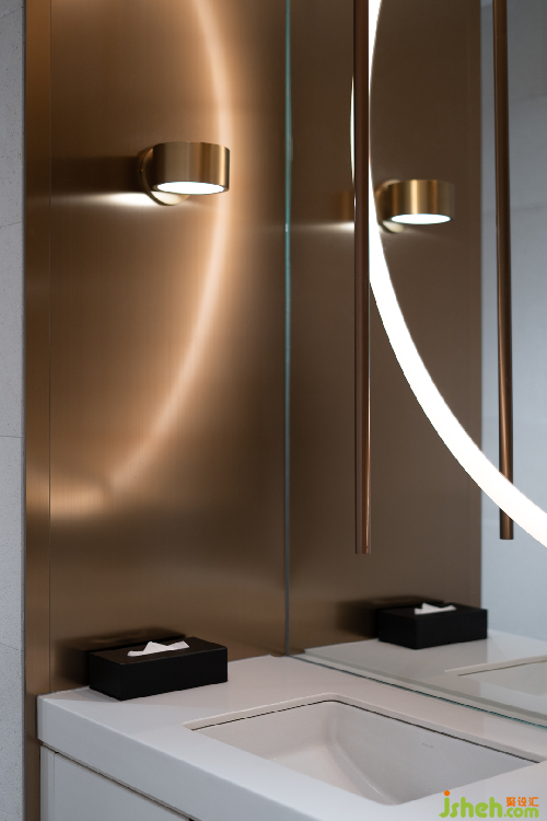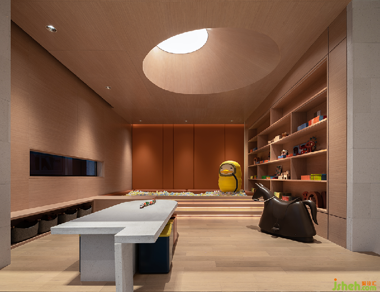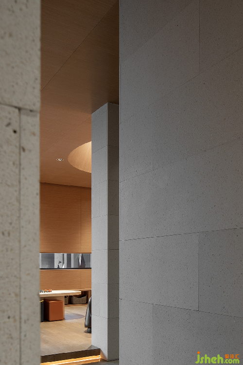 泉眼潺潺,曲渠鱗鱗,與室外的池景連成一片水域。售樓處設(shè)計(jì)釀黃酒的稻米與重達(dá)數(shù)噸的黑山石安置室內(nèi),傳遞關(guān)于時(shí)間的詩(shī)意。浪淘猶見(jiàn)天紋在,一石攬盡太古風(fēng)。巖石的肌理藏著時(shí)光流逝的聲響與印痕,潛移默化將觀者帶入意境之中。
