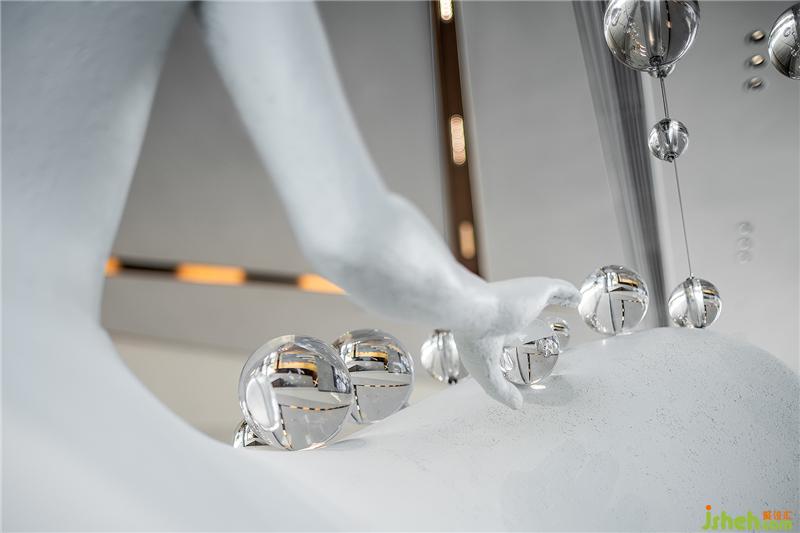 設(shè)計(jì)師將建筑性和符號意義合而為一,將其確定為空間的“靈魂”。 在現(xiàn)場,墻面變成觀者與空間進(jìn)行交流的背景,立面的二維中出現(xiàn)三維坐標(biāo)系,空間中的光源對形體進(jìn)行細(xì)微的再塑造,為展品提供了合適的展覽環(huán)境。倘若你細(xì)看,就會(huì)置身于其間,正如那些不自覺舉起相機(jī)的美麗面孔廣州銷售中心設(shè)計(jì)。
