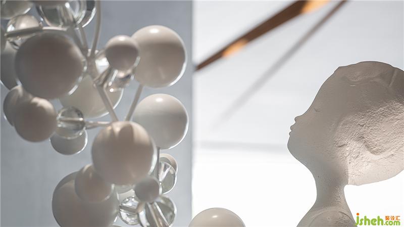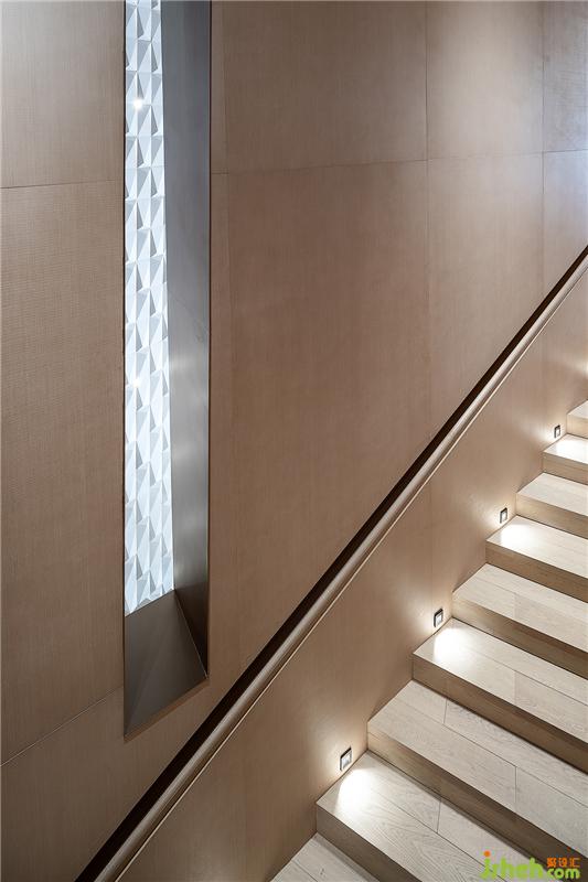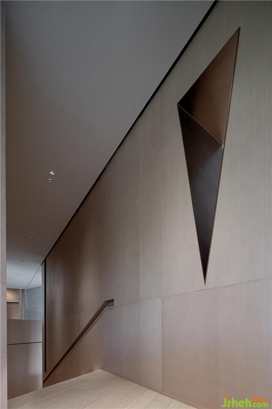 晶體結(jié)構(gòu)的切割方式?jīng)Q定了其璀璨程度。在去往二層的空間中,從頂面到墻面的關(guān)系是一種結(jié)構(gòu)的穿插,宏觀而言,精準(zhǔn)的切割方式讓每一個(gè)形體的變化帶出邊界的光芒。