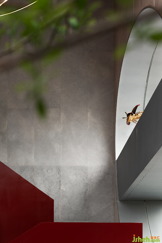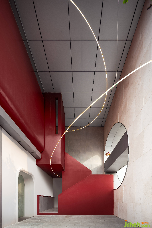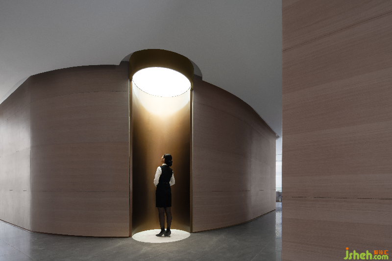 人們在此駐足,感受來自光的洗禮。忽然出現(xiàn)的光線猶如夢境中神光照頂?shù)目臻g寓言,喚起感官和身體的雙重體驗(yàn),創(chuàng)造出一個向所有人開放的、富有戲劇性的小環(huán)境廣州展廳設(shè)計(jì)。