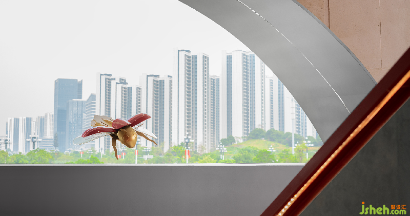 展示中心入口處有些肅穆的詩意,結(jié)合螢火蟲,忽然變得生動有趣起來。光的引入如暗夜中蟲的飛行軌跡,亦如樂曲繞梁的余音。