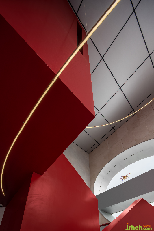 紅色體塊錯落,創(chuàng)造出波峰,靈氣渺冥的光帶猶如波谷。螢火蟲如精靈般啟示著觀者變換視角,昭示夢的吸引力。