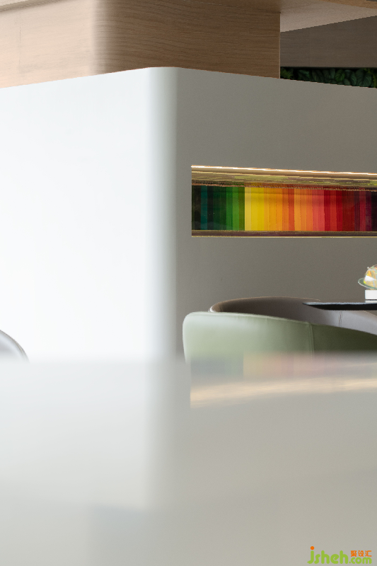 利用“光”這種真實(shí)存在但又不可觸碰的物質(zhì),我們在洽談區(qū)的設(shè)計(jì)之中通過自上而下的光線將虛空表現(xiàn)為一種內(nèi)核力量。