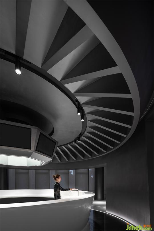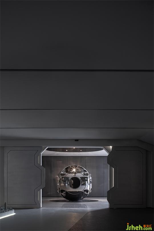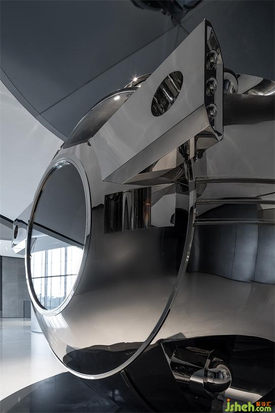 在城市機(jī)場(chǎng)高速的方向上觀看,兩層挑高的未來之城沙盤展示區(qū),猶如一個(gè)巨大的櫥窗藝術(shù)品,“風(fēng)箏”裝置成為凝望的焦點(diǎn)。